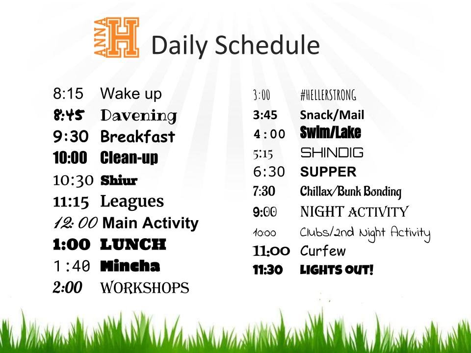 –Chillax time (between supper and Night Activity) allows the girls to choose how to program their own down time. From Bubble Soccer, Speedboat pancake rides, Sports, Baking, to the Heller Zone- our exclusive game room with 2 dance machines, ping pong tables, basketball free throws, air hockey, foosball and more!